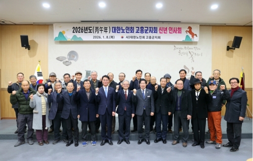 대한노인회 고흥군지회, 2026년 신년 인사회 개최 고흥군 고흥군(군수 공영민)은 8일 고흥분청문화박물관에서 대한노인회 고흥군지회(지회장 정병남) 주관으로 ‘2026년 신년 인사회’를 개최했다. 이번 신년 인사회는 지난해 12월 새..... 2026-01-08
