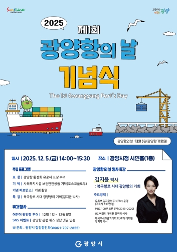 포스코플로우, 광양시 사회복지시설 18곳에 보건안전용품 기탁 광양시 광양시는 12월 5일 개최되는 제1회 광양항의 날 기념식에서 포스코플로우(사장 반돈호)가 광양시 사회복지시설에 보건안전용품을 기탁한다고 밝혔다. 이번 기탁은 항만‧물류 기업..... 2025-12-03