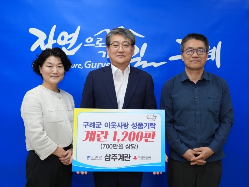 농업회사법인 삼주계란유통 주식회사, 구례군에 계란 1,200판 기탁 구례군 전남 구례군은 지난 1일(수), 농업회사법인 삼주계란유통 주식회사(대표 장진수)에서 계란(15구) 1,200판, 약 700만 원 상당을 기탁했다고 밝혔다. 삼주계란유통은 기..... 2025-10-02