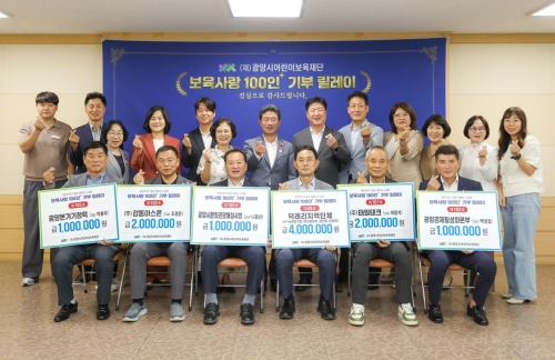 광양시어린이보육재단, ‘보육사랑 100인+ 기부 릴레이’ 기탁식 개최 광양시 (재)광양시어린이보육재단(이사장 이광용)은 9월 18일 광양시청 만남실에서 정인화 광양시장, 이광용 이사장, 기탁자 등 20여 명이 참석한 가운데 「보육사랑 100인+ 기부..... 2025-09-19