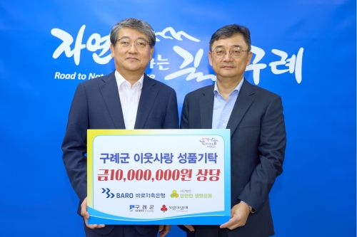 (주)바로저축은행, 구례군 사회복지시설 등에 1,000만 원상당 성품 기탁 구례군 전남 구례군은 9월 19일(금), (주)바로저축은행으로부터 관내 취약계층을 위한 1천만 원 상당의 물품을 기탁받는 전달식을 가졌다고 밝혔다. 기탁된 성품은 전남사회복지공동모..... 2025-09-20