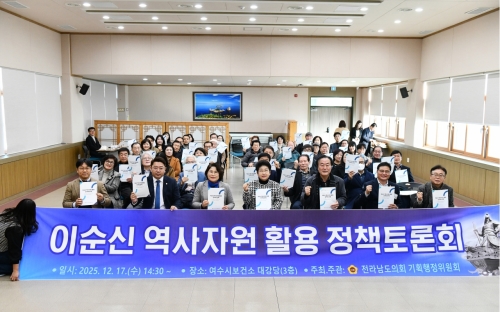 여수시의회, 「이순신 역사자원 활용 정책토론회」성료 여수시의회 여수시의회(의장 백인숙)는 지난 12월 17일 학동 여수시 보건소 3층 회의실에서 개최된 ‘이순신 역사자원 활용 정책토론회’를 통해, 이순신 관련 역사·문화자원의 체계적..... 2025-12-18