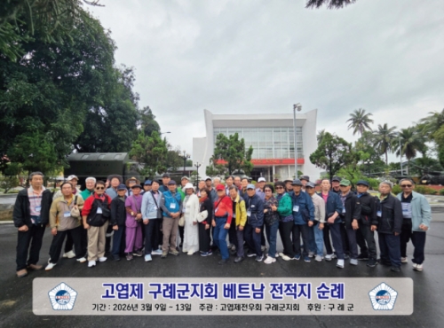 구례 80대 참전 노병들 베트남 격전지 순례 구례군 60연대 베트남 전쟁에 참전했던 80대 노병들이 당시 격전지를 찾아가 먼저 간 전우들을 기리며 안보의식을 고취하는 베트남 전적지 순례 행사를 가졌다. 대한민국고엽제전우회 구..... 2026-03-23