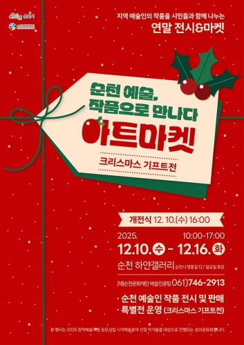 (재)순천문화재단, ‘2025 창작예술지원 공모사업’ 선정작가 성과공유전 개최 순천시 (재)순천문화재단은 2025년 창작예술지원 공모사업에 선정된 작가와 단체의 작품을 시민들에게 소개하고, 창작예술 생태계 활성화를 도모하기 위한 성과공유 전시를 오는 10일부..... 2025-12-05
