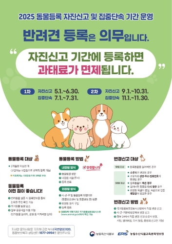 광양시 광양시는 반려견 등록 활성화 및 등록 정보의 현행화를 위해 오는 10월 31일까지 ‘동물등록 자진신고...