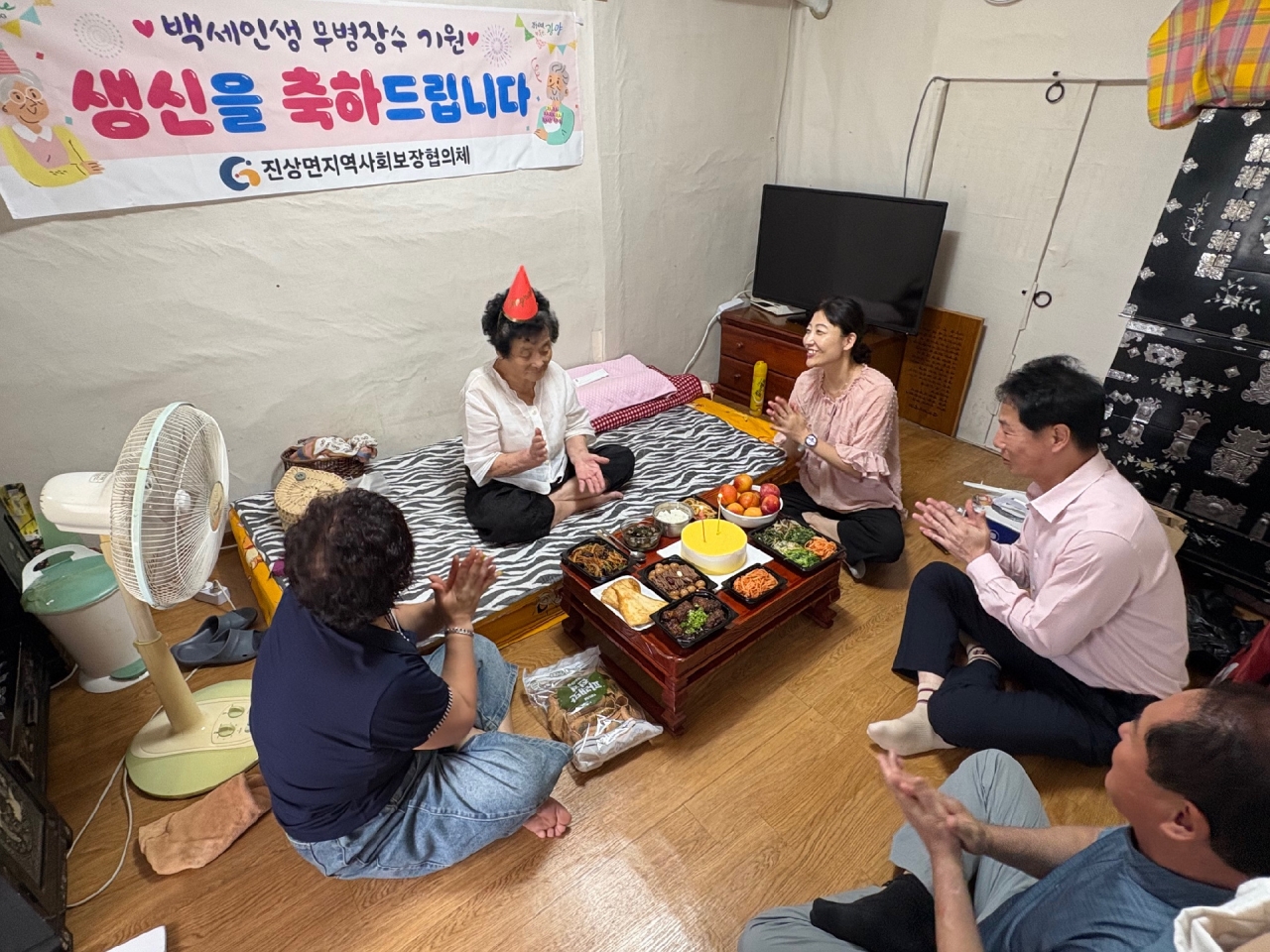‘장수어르신 생신상 차려드리기’는 진상면지역사회보장협의체의 특화사업으로, 올해 2월부터 매월 2명의 관내 장수 어르신을 찾아가 생신상을 전달하고 안부를 살피며 복지서비스를 연계하는 방식으로 추진되고 있다. 현재까지 총 16명의 어르신이 지원을 받았다.