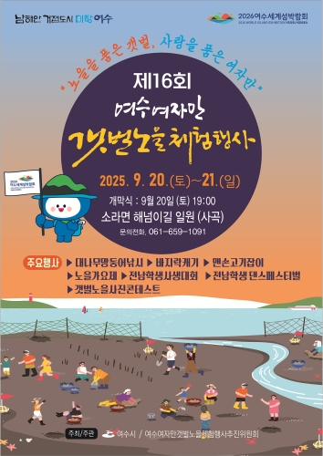 여수시 여수시(시장 정기명)는 오는 9월 20일부터 21일까지 이틀간 소라면 해넘이길 일원에서 ‘제16회 여...