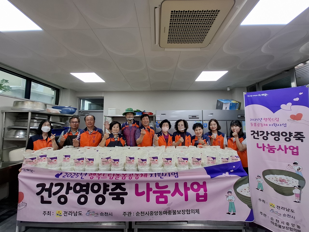 순천시 중앙동 마중물보장협의체(위원장 김경환)는 지난 18일 추석 명절을 맞아, 홀로 거주하는 어르신과 취약계층 50가구에 전복죽과 양념 소불고기를 전달하는 「건강영양죽 나눔」 행사를 진행했다고 밝혔다.