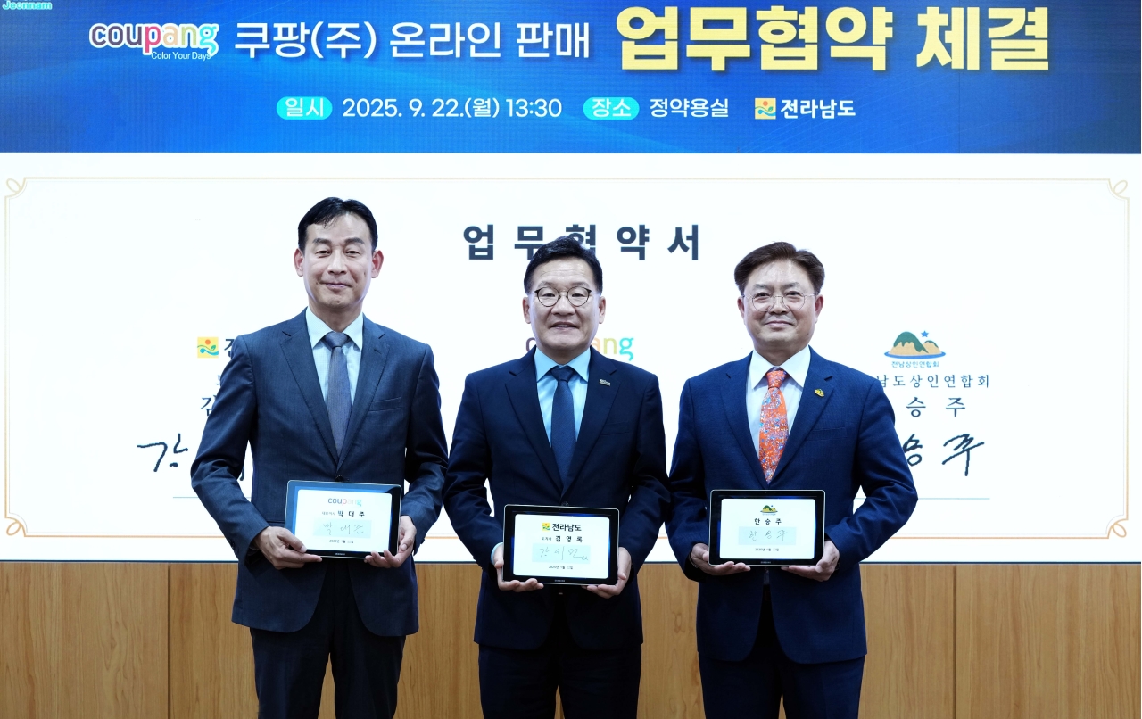 협약에 따라 전남도는 전통시장 온라인 판매를 위한 행정적 지원을 담당하고, 쿠팡㈜은 안정적인 판로 제공과 마케팅 협력에 나선다. 전남도상인연합회는 우수상품 발굴과 기관 간 정보교류를 추진해 상생협력 기반을 강화하기로 했다.