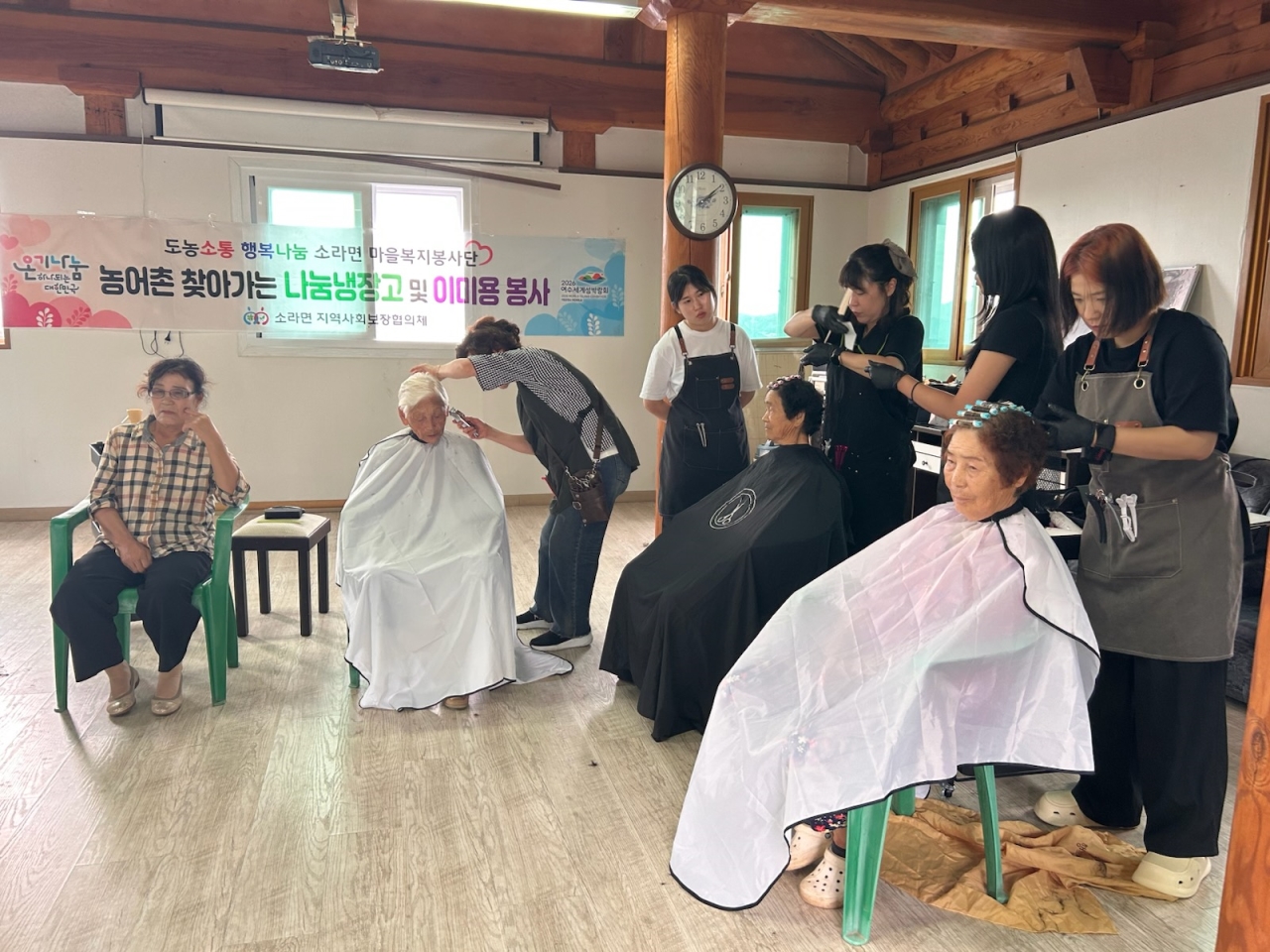 이날 이미용 봉사에 함께한 감성미용봉사단은 2023년부터 매월 1회 소라면 일원을 돌며 파마, 염색, 커트 등 이미용 봉사활동을 꾸준히 이어오며 마을 어르신들로부터 큰 호응을 얻고 있다.