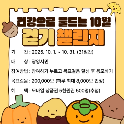 광양시 광양시는 지역 주민의 건강생활실천을 지원하기 위해 오는 10월 1일부터 10월 31일까지 모바일 걷기...