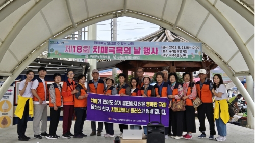 구례군 구례군 치매안심센터는 지난 23일 제18회 치매극복의 날을 맞아 구례읍 5일 시장에서 지역주민들과 함...