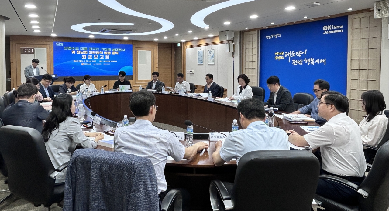 전라남도는 중장기 산업수요와 특성에 맞는 외국인력을 유치하고, 지역에 정착할 수 있는 방안 마련을 위해 ‘산업수요 대응 외국인·기업 실태조사 및 전남형 이민정책 모델 발굴 용역’ 최종보고회를 지난 24일 개최했다.
