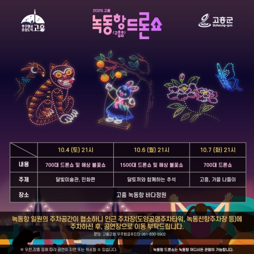 고흥군 고흥군(군수 공영민)은 민족 대명절 추석을 맞아 오는 10월 4일, 6일, 7일 3일간 녹동항 바다정...