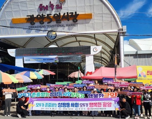 광양시 광양시는 지난 9월 26일 광양시 여성단체협의회(회장 황호순)가 광양읍 5일장에서 ‘양성평등 인식 확...