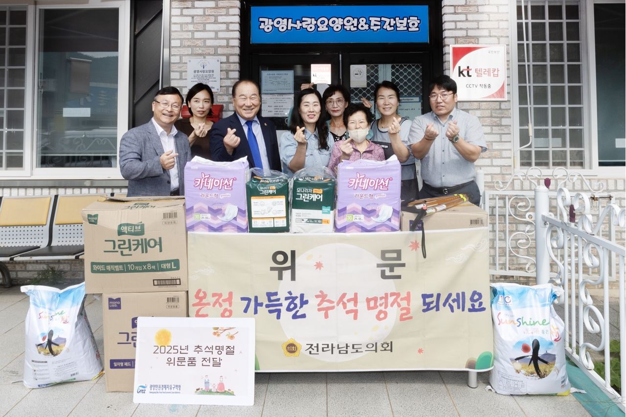 이번 위문에는 △광영사랑 노인복지센터 △가온누리 노인복지센터 △온마음 주간보호센터 등 광양시 3곳을 비롯해 여수시 2곳, 경남 하동군 2곳 등 총 7개 시설이 포함됐다. 광양경자청은 각 시설이 필요로 하는 생필품과 쌀 등을 직접 전달하며 관계자들을 격려했다.