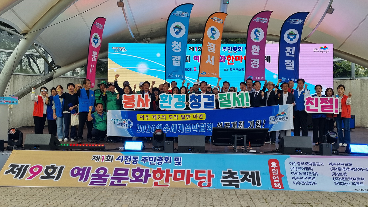 여수시 시전동(동장 고기현)은 지난 26일 웅천친수공원에서 열린 ‘제1회 주민총회 및 제9회 예울 문화 한마당 축제’가 시민 1,000여 명이 참여한 가운데 성황리에 종료됐다고 밝혔다.