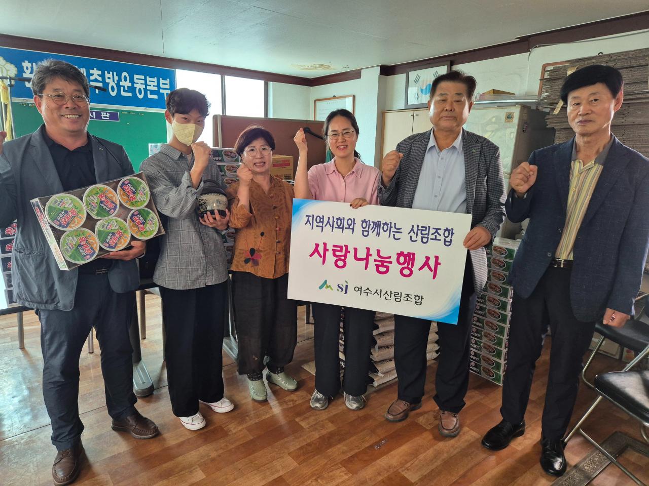 여수시산림조합(조합장 정행균)이 지난 26일 여수시 광림동에 30만 원 상당의 물품(고추장, 된장, 컵라면)을 후원했다.