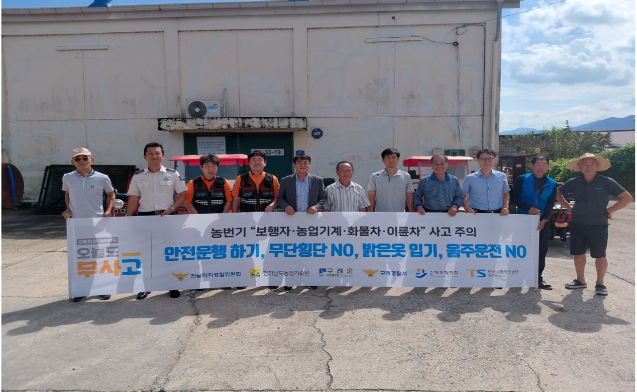 김순호 구례군수는 “농촌 교통사고는 단순한 안전 문제를 넘어 농업인의 생계와 직결되는 만큼 예방이 무엇보다 중요하다”며, “앞으로도 관계 기관과 긴밀히 협력해 농촌 맞춤형 안전대책을 지속적으로 추진하겠다”고 밝혔다.
