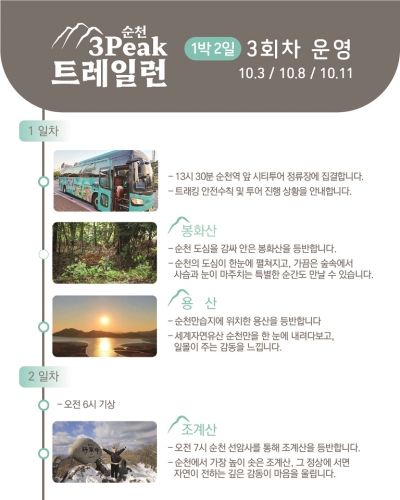 순천시 순천시(시장 노관규)는 10월부터 11월까지 자연의 가치와 아름다움을 온전히 체험할 수 있는 ‘1박 ...