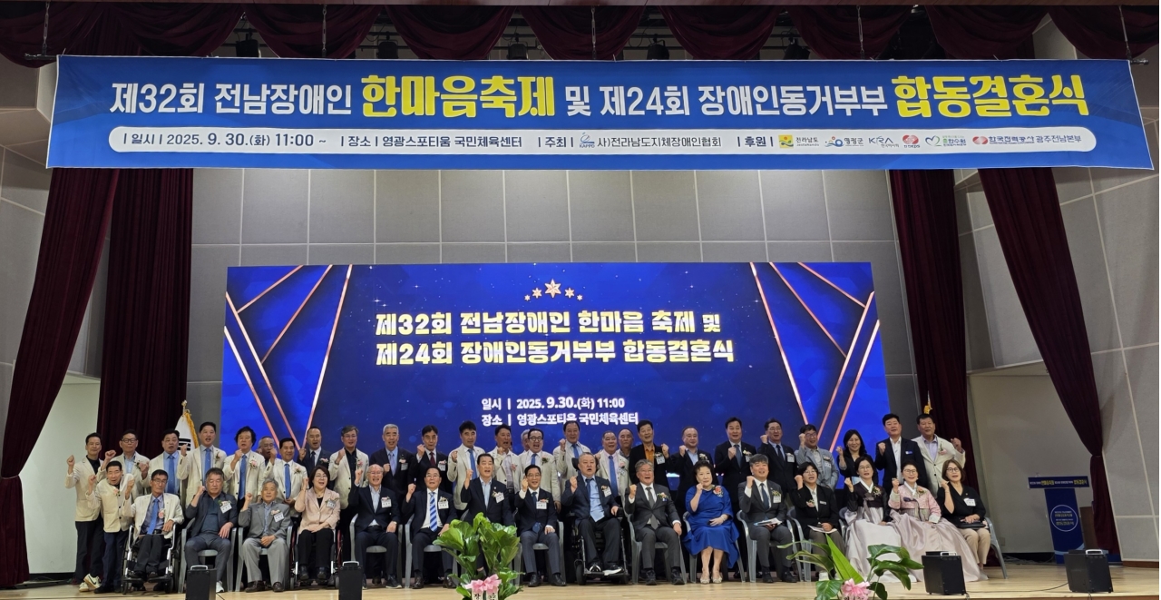 전라남도는 지난 9월 30일 영광스포티움국민체육센터에서 제32회 전남장애인한마음축제와 제24회 장애인동거부부 합동결혼식을 성황리에 개최했다고 밝혔다.