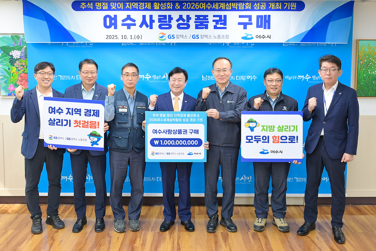 여수시(시장 정기명)는 GS칼텍스가 추석 명절을 맞아 ‘여수사랑상품권 10억 원’을 구매해 지역경제 활성화와 2026여수세계섬박람회 성공 개최를 기원하며 지역 소상공인과의 상생 행보를 이어가고 있다고 밝혔다.