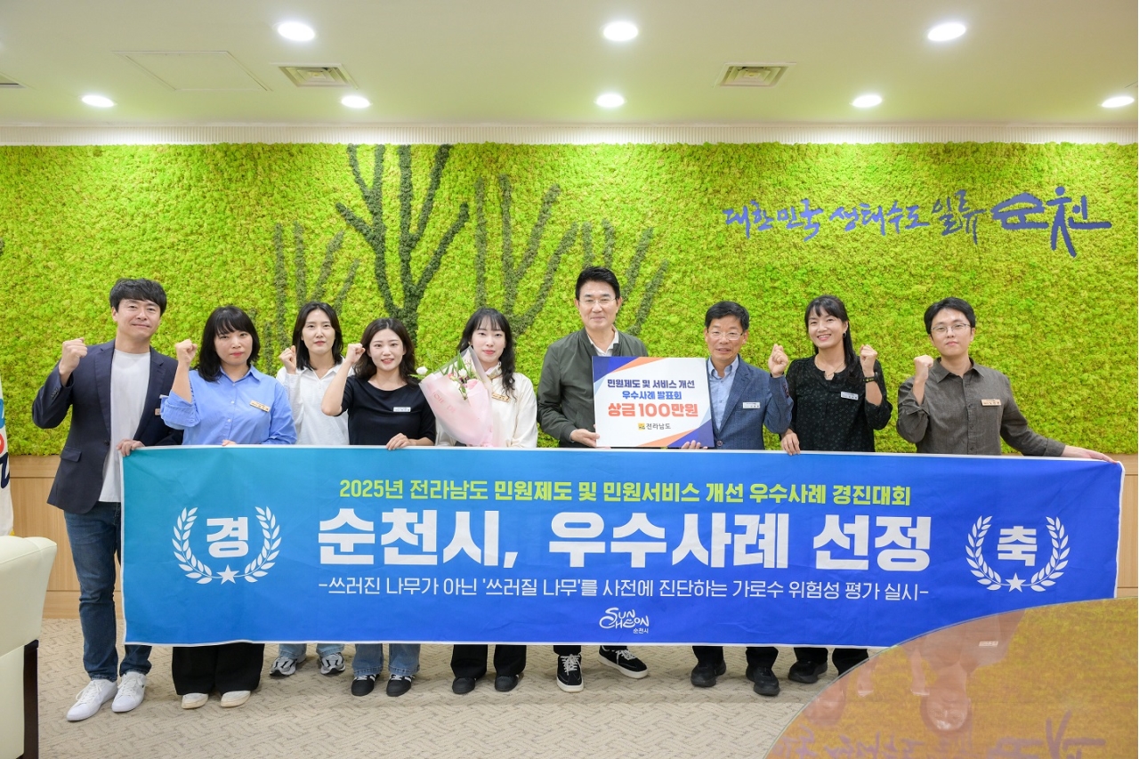 순천시(시장 노관규)가 전라남도 도민행복소통실에서 주관한 「2025년 민원제도 개선 우수사례」 공모에서 우수사례로 선정되어, 지난 1일 시상식 및 사례발표를 진행했다.