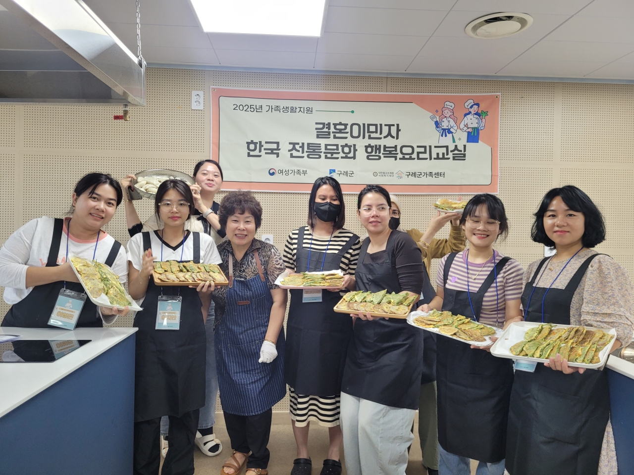 구례군가족센터(센터장 박미연)는 지난 10월 1일(수) 구례행복가족복합센터 2층 공유 부엌에서 결혼이민자 8명을 대상으로 ‘2025년 한국 전통문화 행복요리교실’을 진행했다. 이번 요리 교실은 추석을 주제로 명절 음식인 송편과 모듬전(육전, 동태전, 깻잎새우전)을 만들어보는 시간으로 구성됐다.