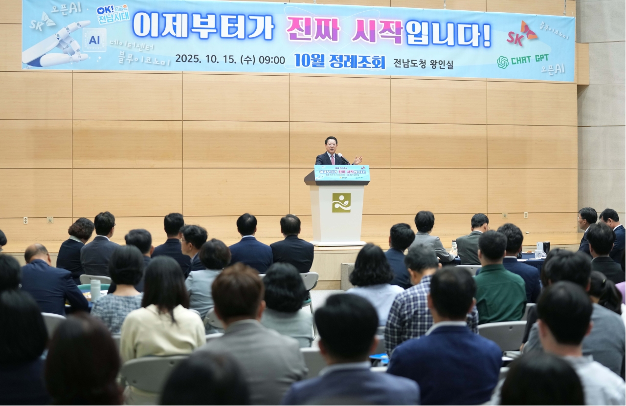 김영록 전라남도지사는 15일 “오픈AI-SK 합작 글로벌 AI데이터센터 구축은 전남 미래를 여는 새로운 전환점”이라며 “전남이 대한민국의 미래 산업벨트이자 선벨트로 도약할 기회”라고 강조했다.