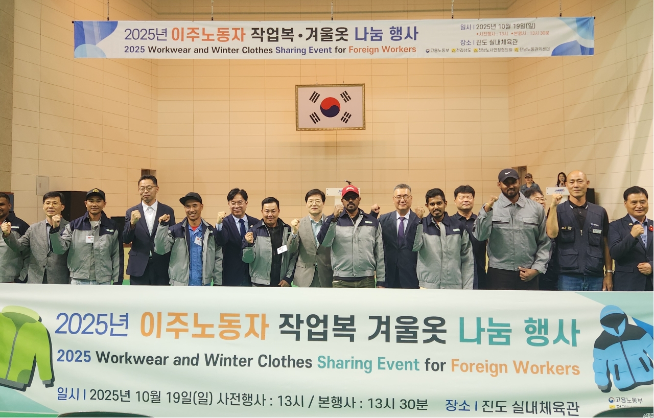 전라남도는 19일 진도군 실내체육관에서 이주노동자 500여 명을 대상으로 작업복 나눔 행사를 개최했다.
