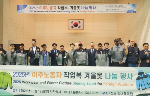 전라남도 전라남도는 19일 진도군 실내체육관에서 이주노동자 500여 명을 대상으로 작업복 나눔 행사를 개최했...