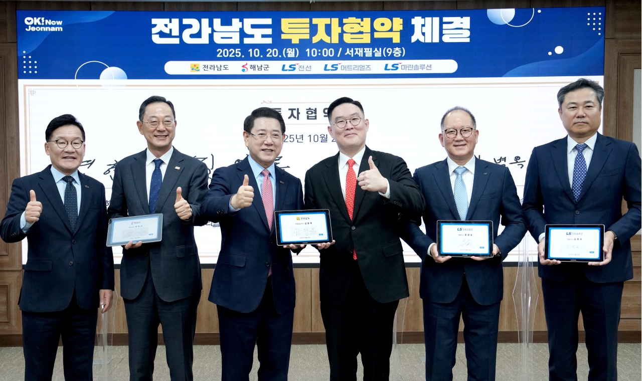 전라남도는 20일 도청 서재필실에서 국내 전선업계 1위 기업 ㈜LS전선의 자회사인 ㈜LS머트리얼즈, ㈜LS마린솔루션과 해상풍력 전용 설치항만 조성, 케이블 설치선 건조 등을 위한 투자협약을 했다.