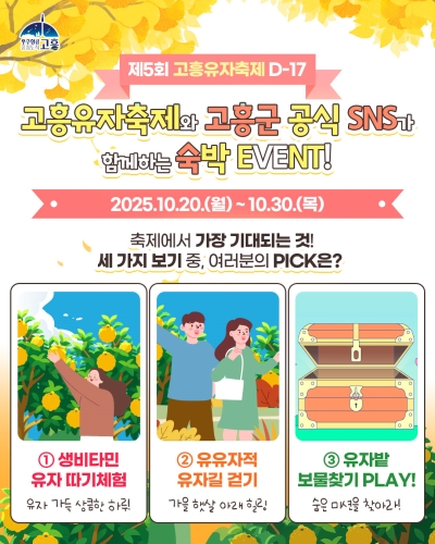 고흥군 고흥군(군수 공영민)은 10월 20일부터 30일까지 11일간, 고흥군 공식 SNS 채널을 통해 ‘제5...