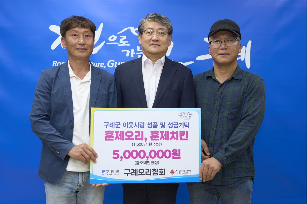 전남 구례군은 구례오리협회(회장 한정호)가 지난 20일(월), 관내 어려운 이웃을 위해 훈제오리 및 훈제치킨 1,500만 원 상당과 성금 500만 원을 기탁했다고 밝혔다.