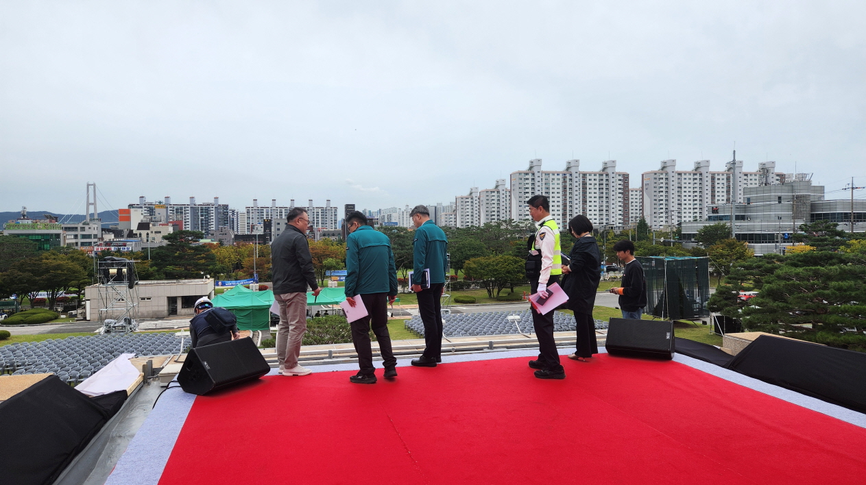 점검반은 ▲주무대 구조물 ▲무대 주변 전기시설물 ▲관람객 밀집구역 ▲우천 시 대비계획 ▲주차장 등을 중점적으로 점검했으며, 행사 중 돌발 상황이 발생하더라도 즉시 대응할 수 있도록 시설의 안전상태와 비상대응 체계를 면밀히 확인했다.