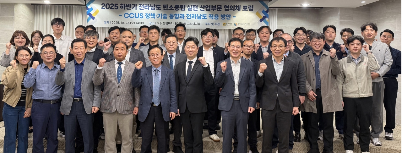 전라남도는 22일 여수의 한 호텔에서 산업계의 적극적인 탄소중립 실현 의지를 다지기 위해2025년 하반기 전라남도 산업부문 탄소중립 협의체 포럼을 열어 ‘CCUS 정책·기술 동향과 전남도 적용방안’ 해법을 논의했다.