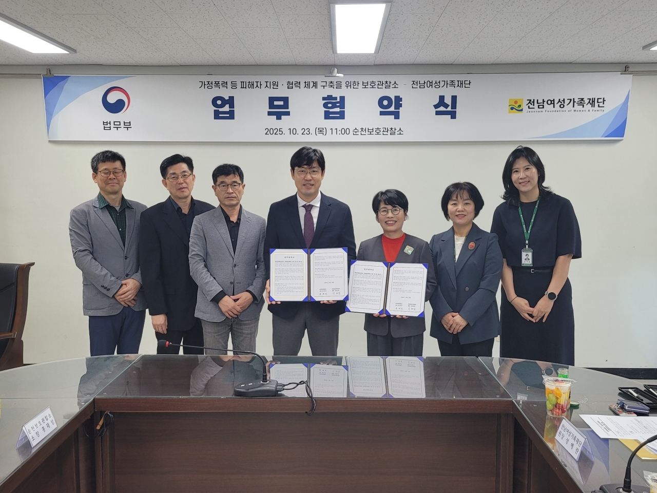 ❏ 전남여성가족재단(원장 성혜란)은 10월 23일(목), 순천보호관찰소(소장 홍재성)와 가정폭력, 스토킹, 교제폭력 등 폭력 피해자 지원 및 예방교육을 통한 지역사회 안전망 구축·강화를 위해 업무협약(MOU)을 체결했다고 밝혔다.