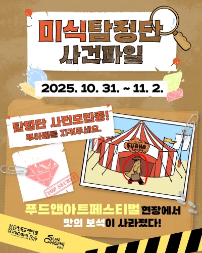 순천시 순천시(시장 노관규)는 오는 10월 31일부터 11월 2일까지 3일간, ‘푸드앤아트페스티벌’의 일환으...