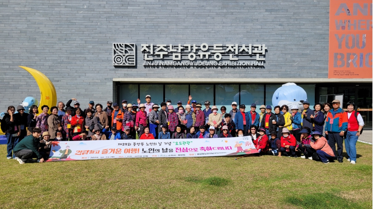 순천시 중앙동 노인의 날 추진위원회(위원장 김영주)는 제29회 노인의 날을 기념하여 지난 23일 관내 어르신 100여 명이 참여한 가운데 진주남강유등전시관과 삼천포 일원으로 효도관광을 다녀왔다고 밝혔다.