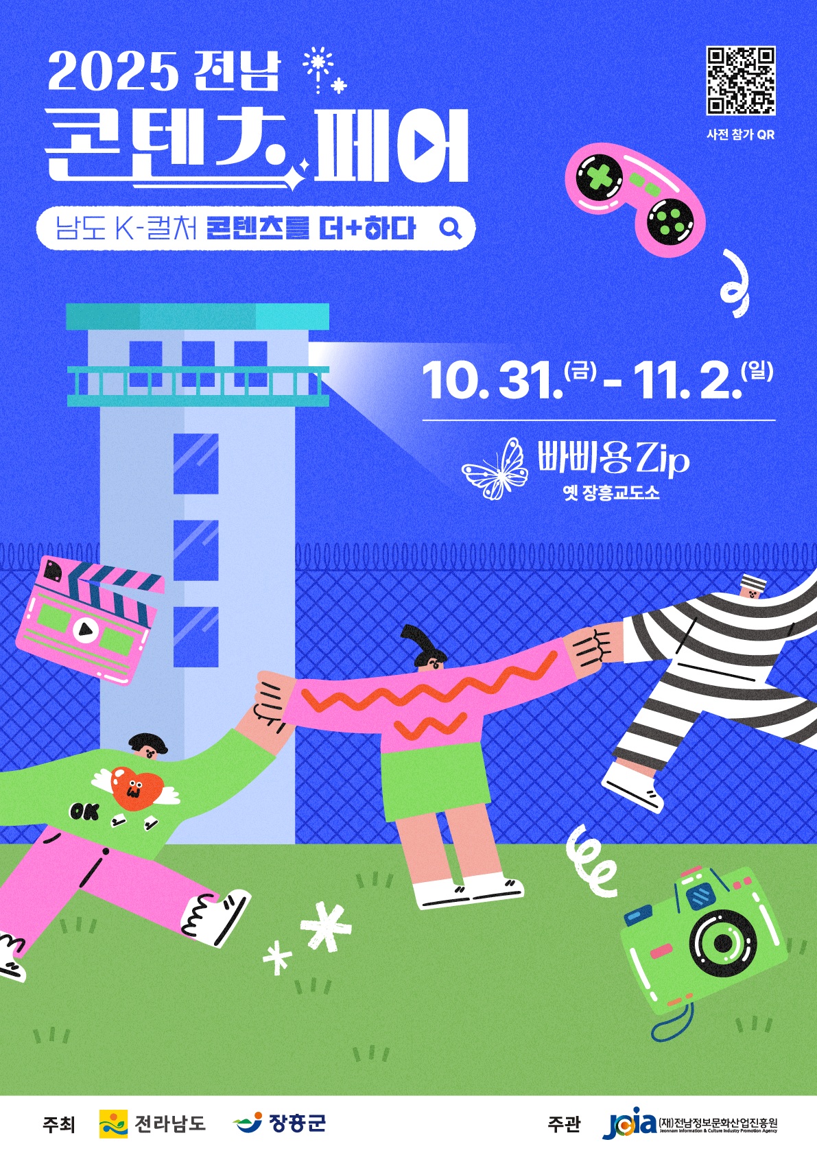 전라남도는 31일부터 3일간 장흥 빠삐용zip 일원에서 로컬 콘텐츠 전시와 체험, 토크 콘서트 등 다채로운 프로그램을 즐길 수 있는 ‘2025 전남 콘텐츠 페어’가 열린다고 밝혔다.