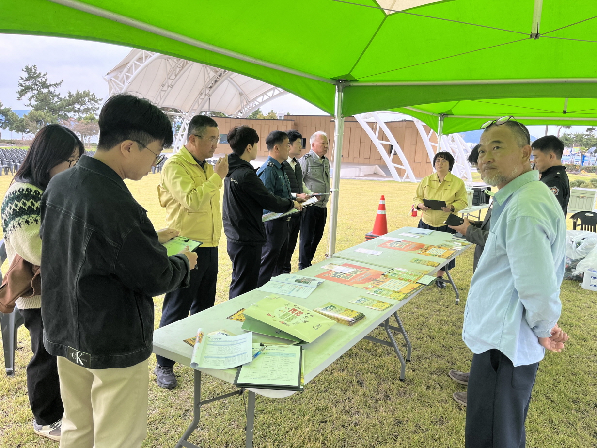 주요 점검 사항은 ▲폭죽 사용에 따른 화재 예방을 위한 소화기 및 소방시설 설치 여부 ▲해안가 안전관리 대책 수립 여부 ▲체험프로그램 부스 등 임시 가설물의 안전성 등으로, 행사장 내 전반적인 안전 요인을 세밀하게 확인했다.
