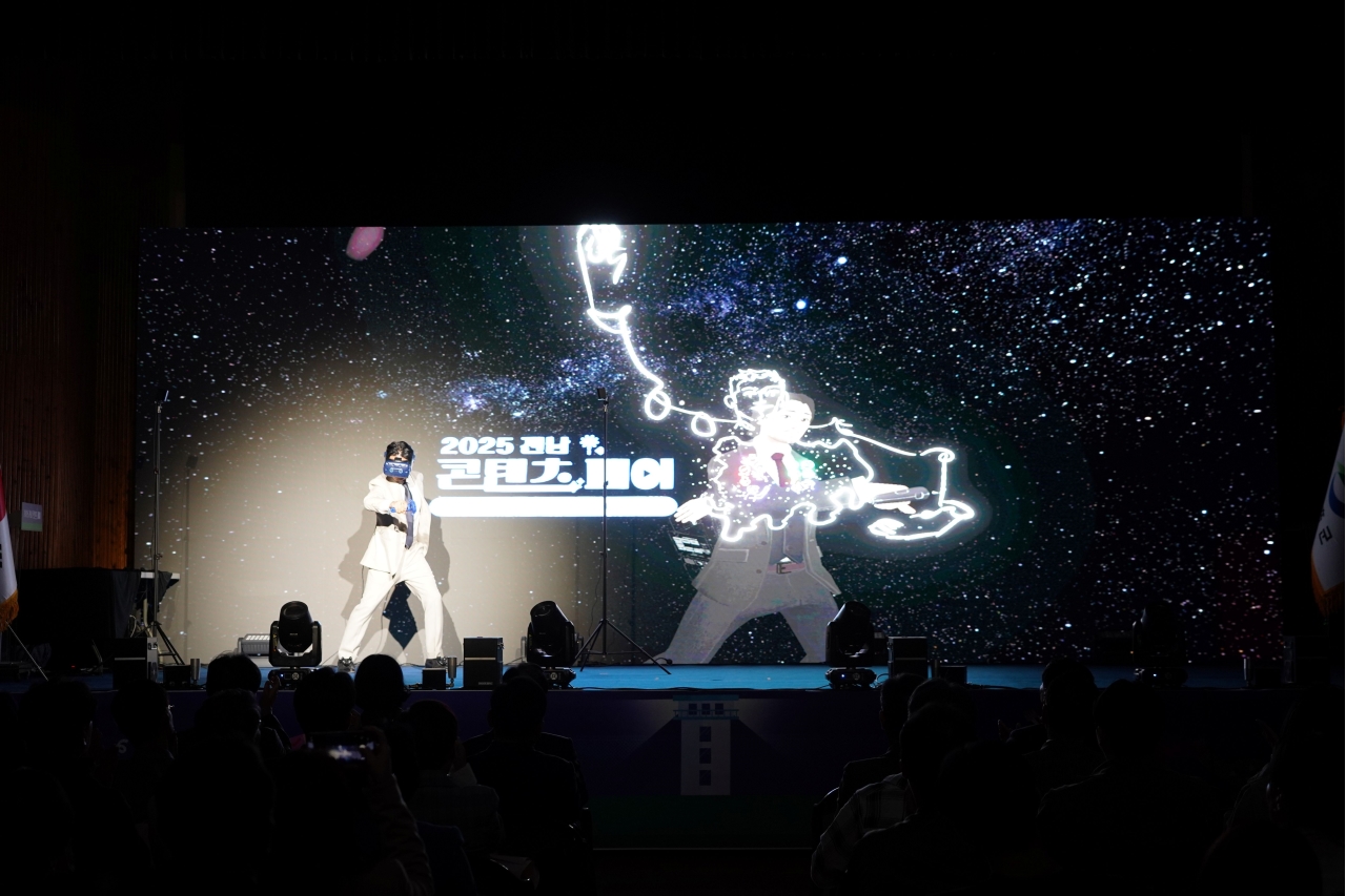 이날 개막식에선 ‘남도 K-컬처 글로벌로 나아가는 로컬의 힘’을 주제로 한 영상 상영, 전남 콘텐츠산업 발전 유공자 표창, 전남 콘텐츠 혁신대상과 스토리 공모전, 장흥군 홍보 콘텐츠 공모전을 통한 우수작 시상, ‘콘텐츠로 미래의 문을 여는 전남’을 표현한 개막 퍼포먼스 등이 펼쳐졌다.