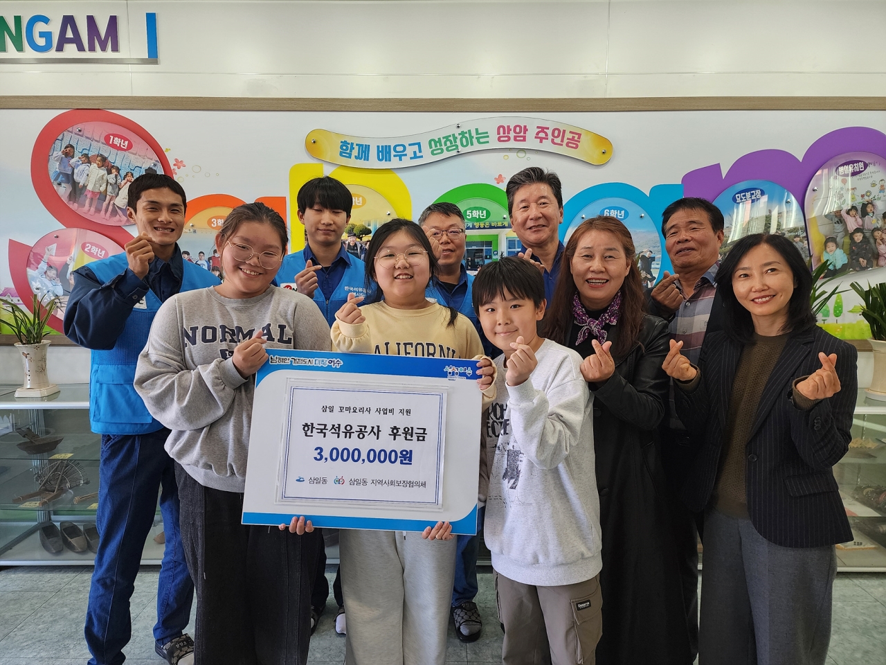 한국석유공사 여수지사(지사장 김중배)는 지난 10일 상암초등학교에서 삼일동 지역사회보장협의체 연합모금사업인 ‘삼일동 꼬마요리사’ 프로그램을 위해 300만 원을 후원했다.