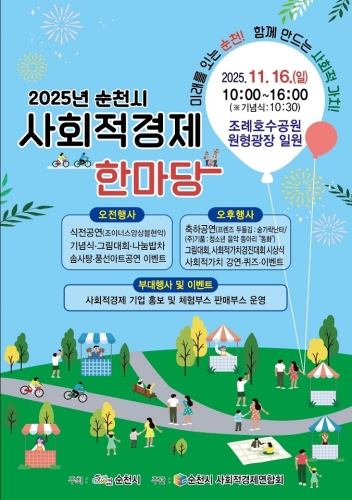 순천시 순천시(시장 노관규)는 오는 16일 조례호수공원 원형광장 일원에서 ‘미래를 잇는 순천! 함께 나누는 ...
