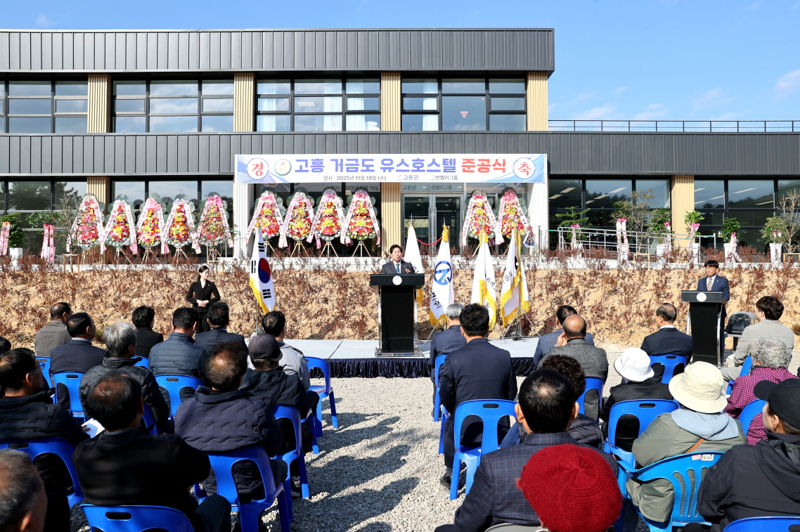 고흥군(군수 공영민)은 19일 금산면 연소마을에서 관내 첫 청소년수련시설인 ‘거금도 유스호스텔’ 준공식을 개최했다고 밝혔다.