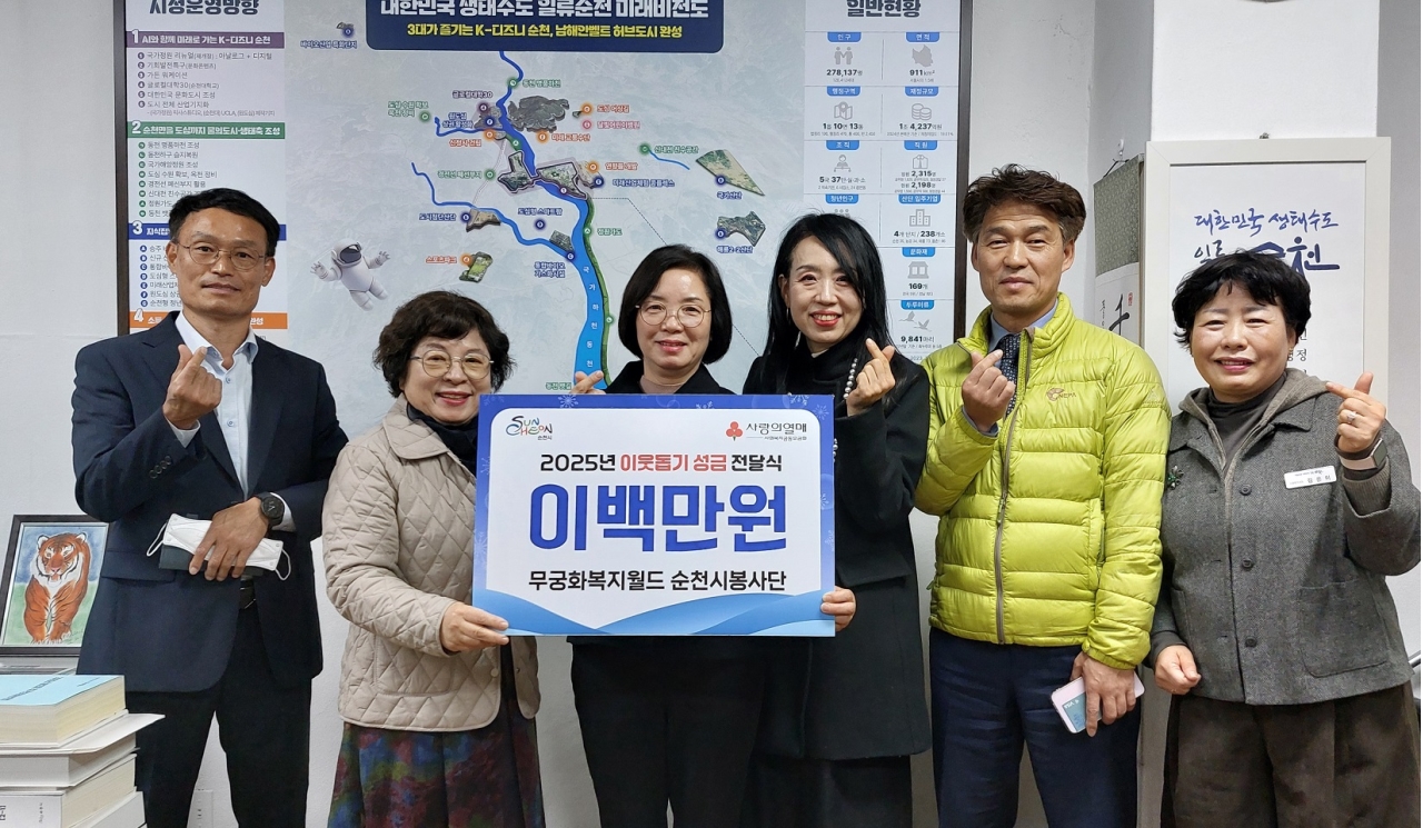 순천시(시장 노관규)는 지난 21일 (사)무궁화복지월드 순천봉사단(단장 조영철)에서 이웃돕기 성금 200만원을 기탁했다고 밝혔다.