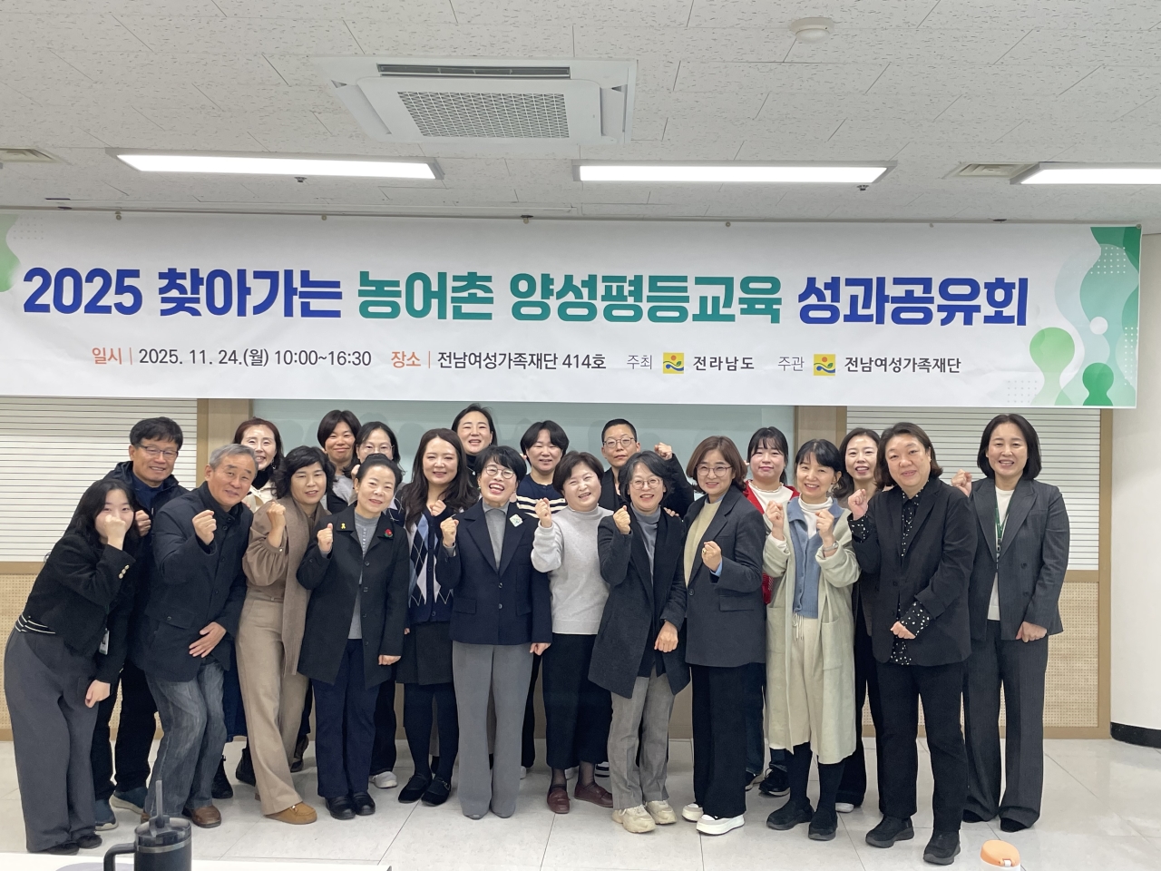 ❏ 전남여성가족재단(이하 재단)은 오는 11월 24일(월) 재단 414호에서‘2025 찾아가는 농어촌 양성평등교육’성과공유회를 개최했다. 이번 성과공유회는 올해 현장에서 교육을 진행한 강사들을 초청해, 한 해의 운영 성과를 공유하고, 2026년도 교육 방향을 논의하기 위해 마련됐다.