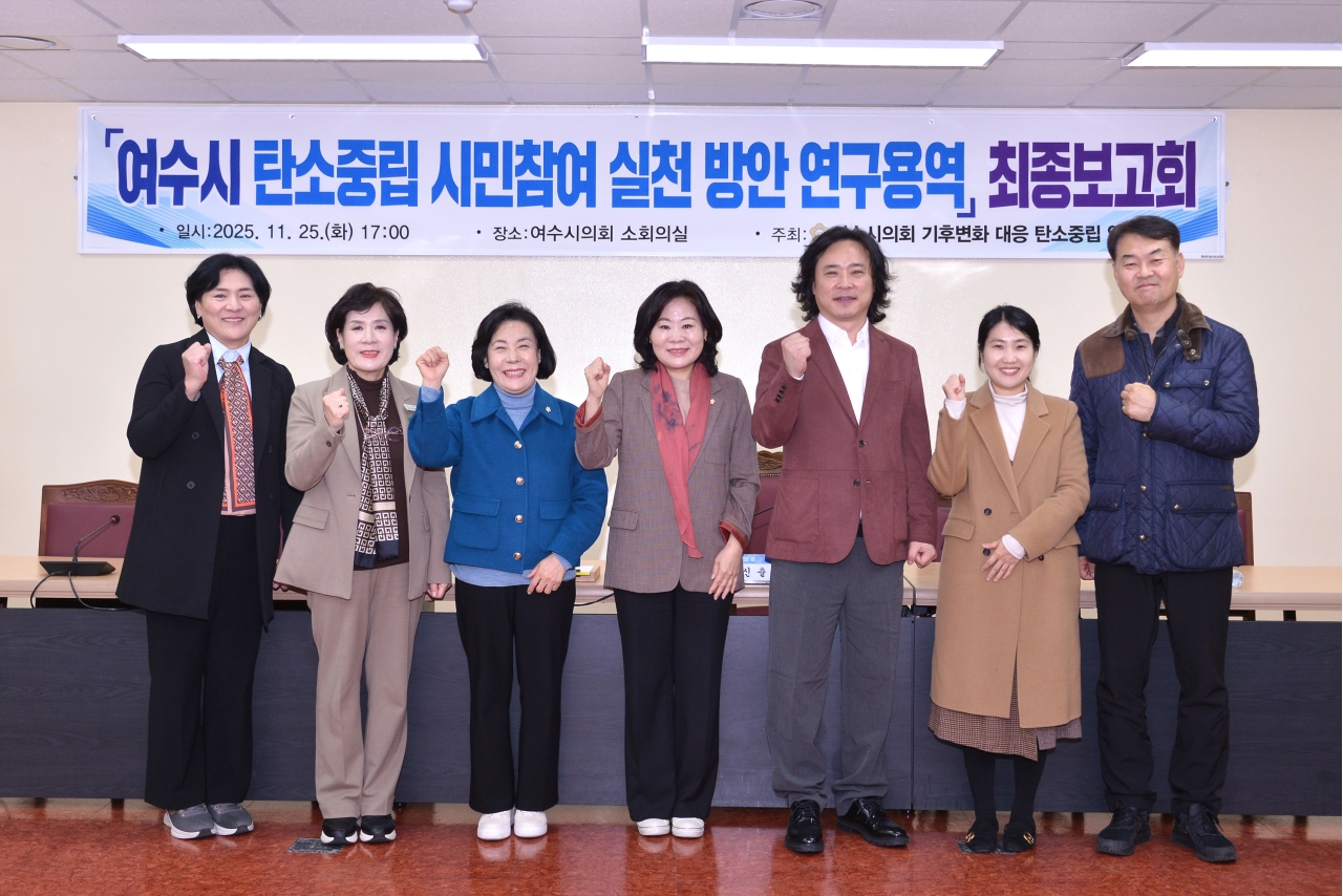 여수시의회 의원연구단체 ‘기후변화 대응 탄소중립 연구회’(대표의원 정신출)가 지난 11월 25일 시의회 소회의실에서 「여수시 탄소중립 시민참여 실천방안 연구용역 최종보고회」를 개최했다.