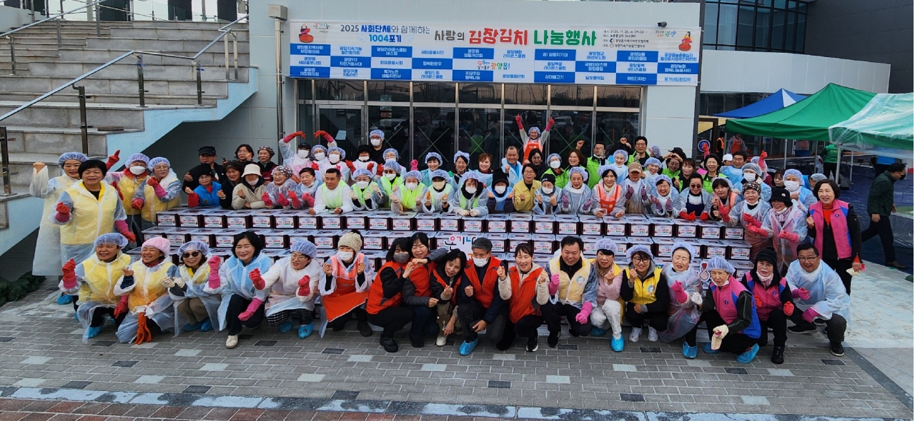 광양시 광양읍지역사회보장협의체(공공위원장 김미란, 민간위원장 송근배)는 지난 25일 취약계층 500가구에 김장(9L) 500통을 전달하기 위한 ‘1004포기 사랑의 김장김치 담그기’ 나눔행사를 개최했다.