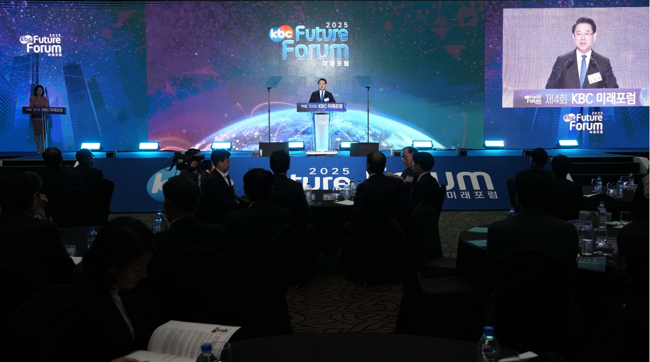 김영록 전라남도지사가 26일 여수 소노캄호텔에서 열린 KBC미래포럼에 서 전남의 산업대전환 전략을 제시했다.